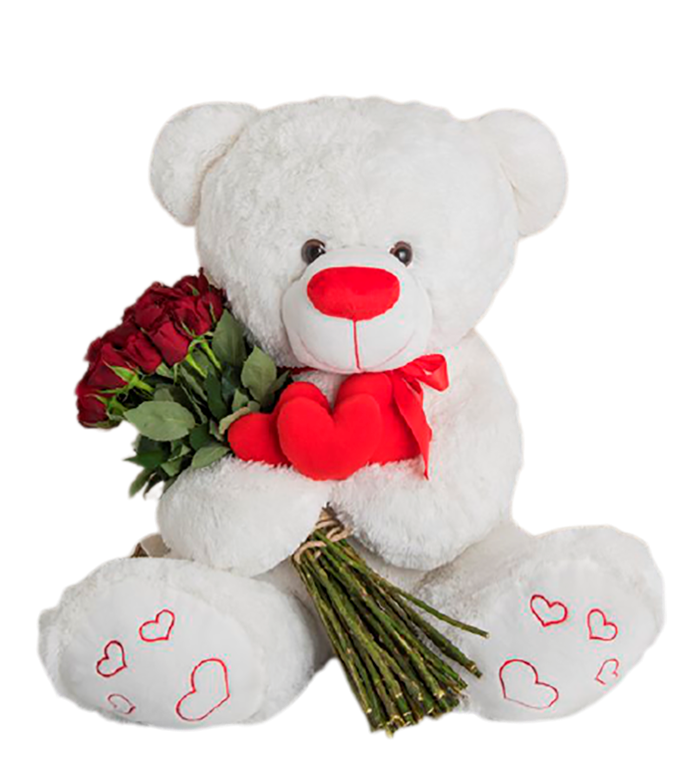 21 Gül Tutan 60 cm Sevimli Ayıcık